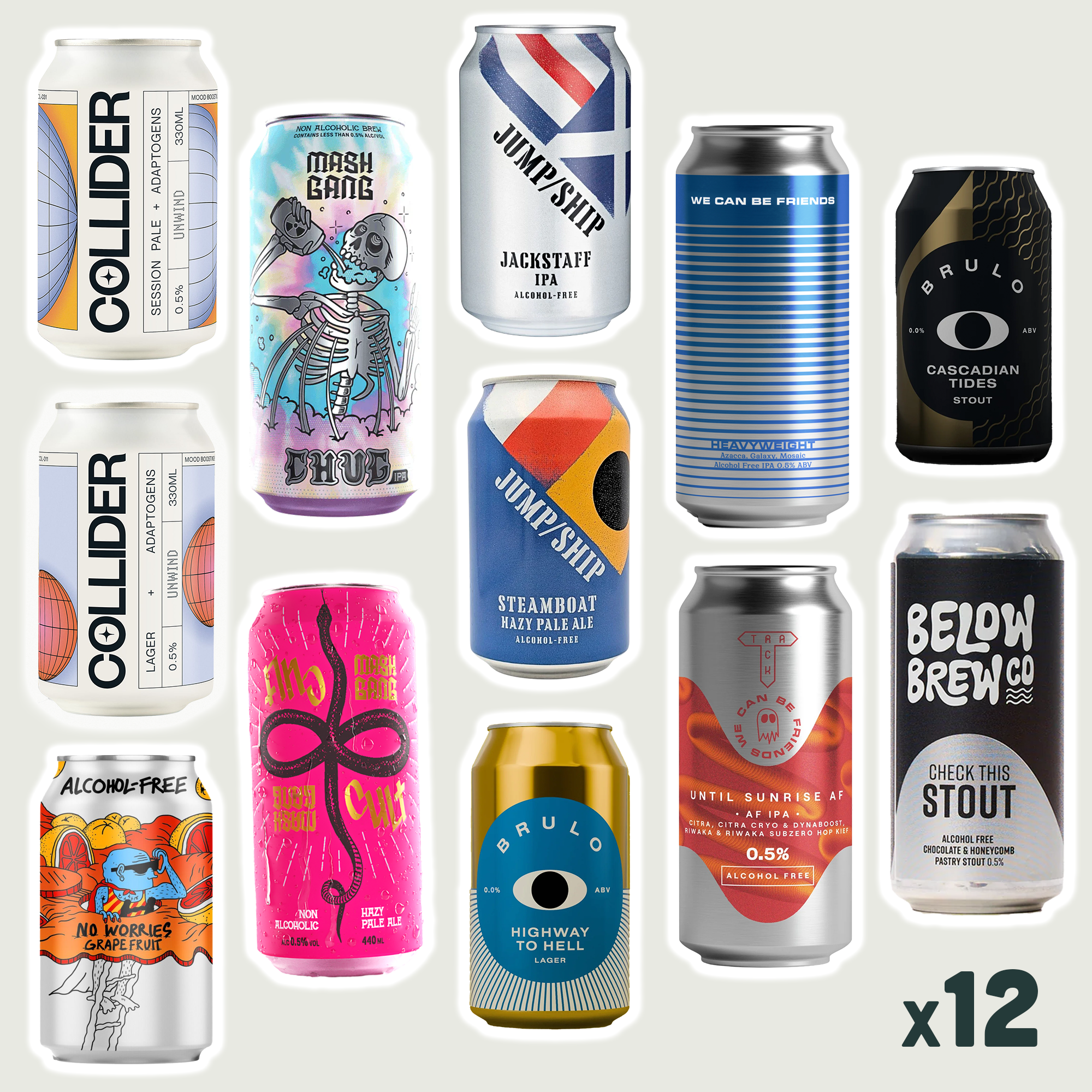 A curated selection of products from our premium No & Low Alcohol Beer collection (max. 0.5% ABV), featuring 12 favourites from Mash Gang, Lervig, We Can Be Friends, Brulo, Jump Ship, Below Brew Co., and Collider. Go on, fill the fridge!